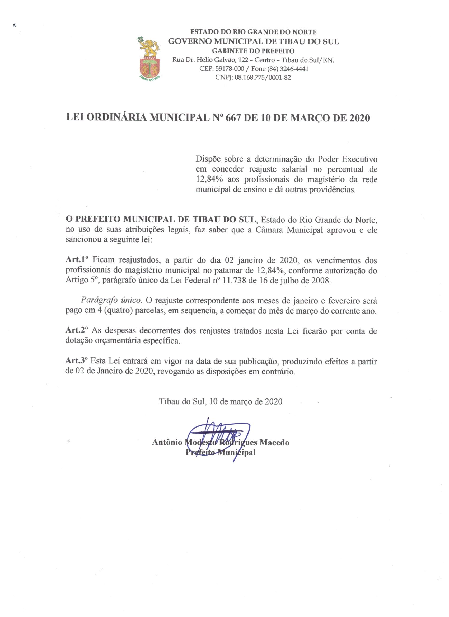 Lei Municipal nº 667 de 10 De Março De 2020